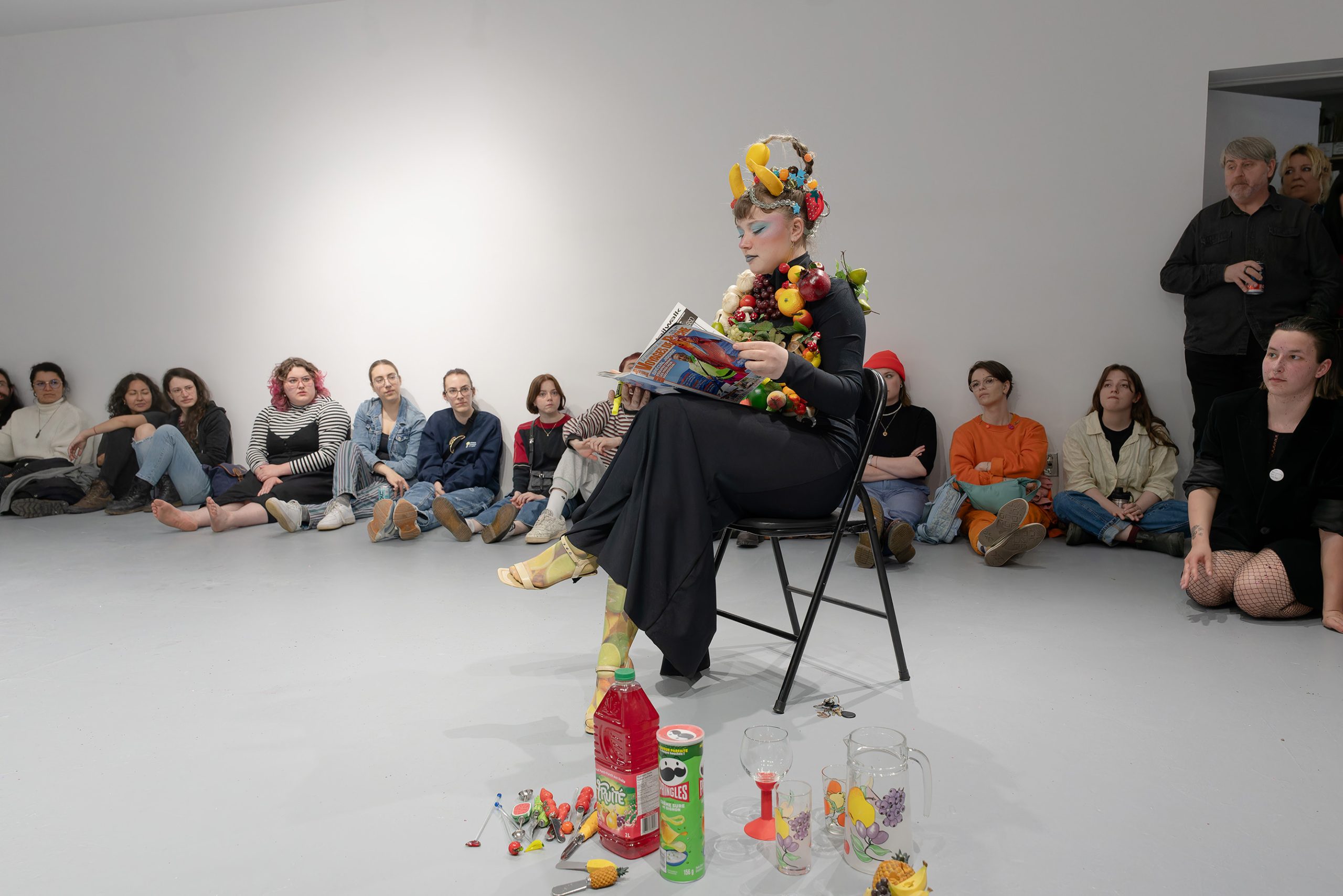 Œuvre : Le Fruit (La Femme-Fruits) Événement : Soirée estudiantine (12 avril 2024) Lieu : Le Lieu, Centre en art actuel, Québec, Québec Description : Le Fru
