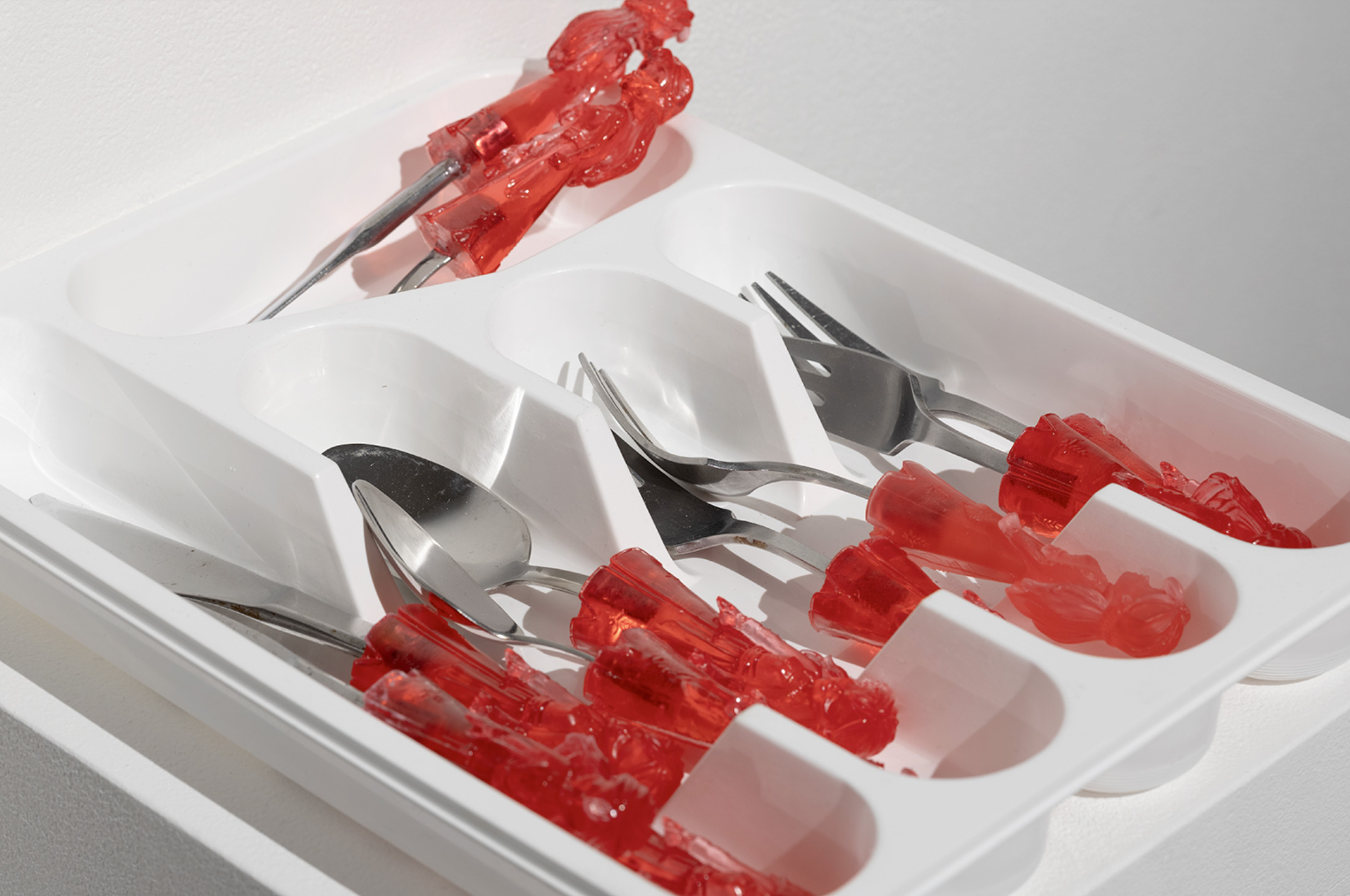 Photo 3 : Femmes-Ustensiles, sculpture, résine, métal,18 x 4 x 2,5 cm, 2021.