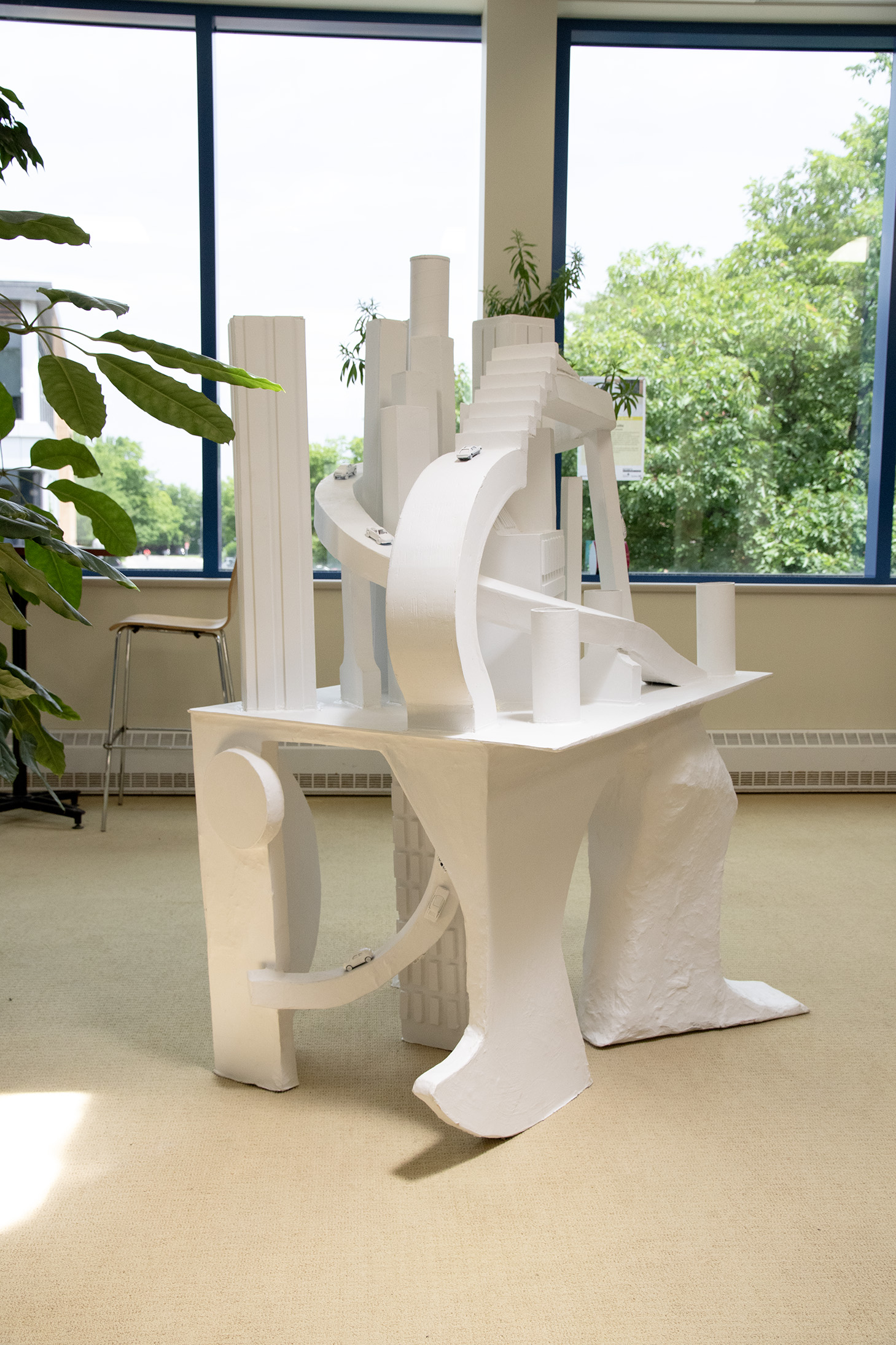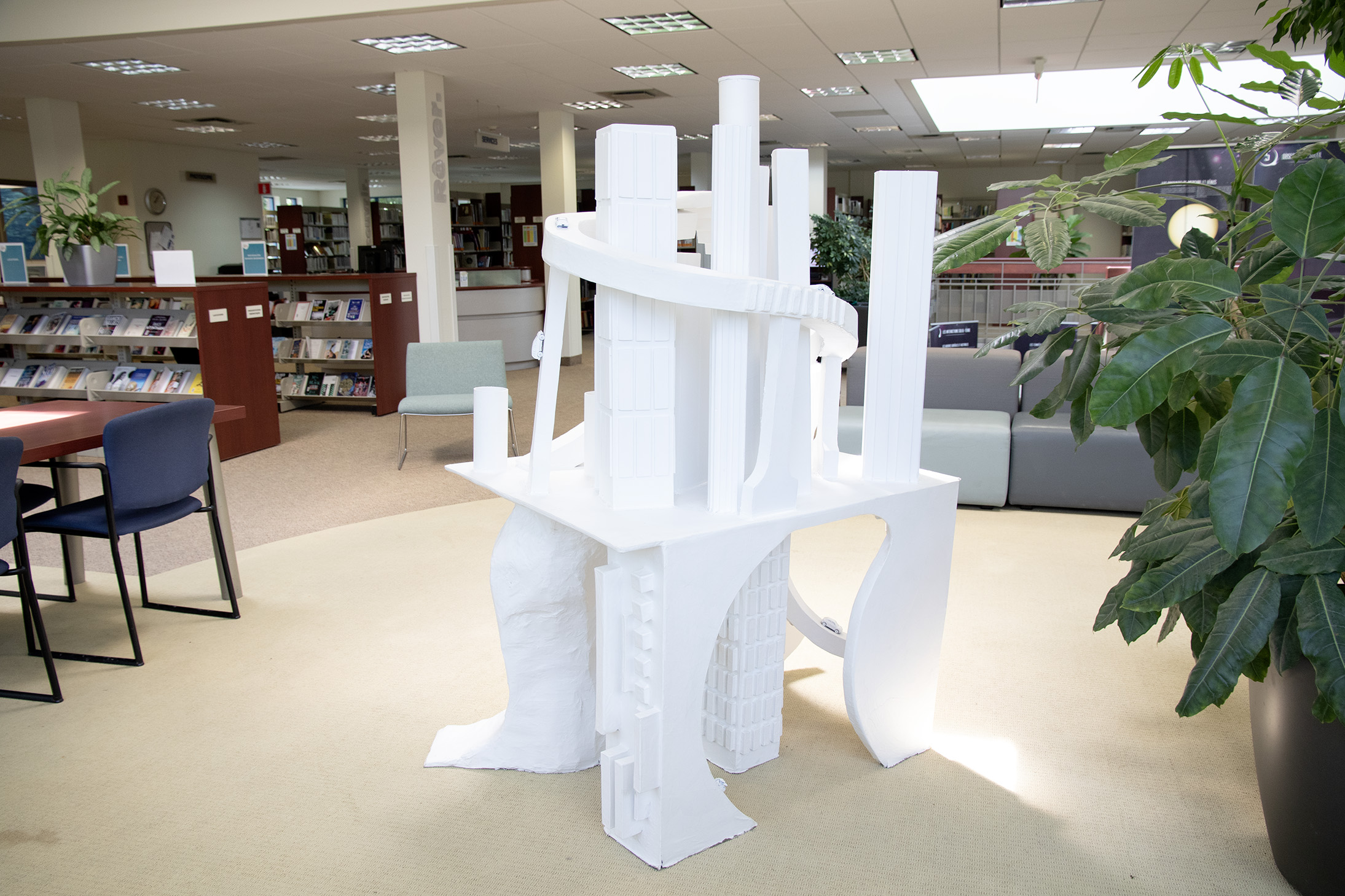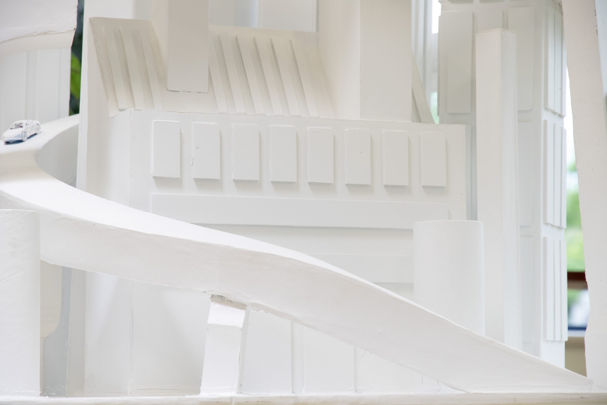 Œuvre : Petite ville, sculpture, carton, foamcore, plâtre, peinture, 102 x 166 x 82 cm, 2024-2023,
