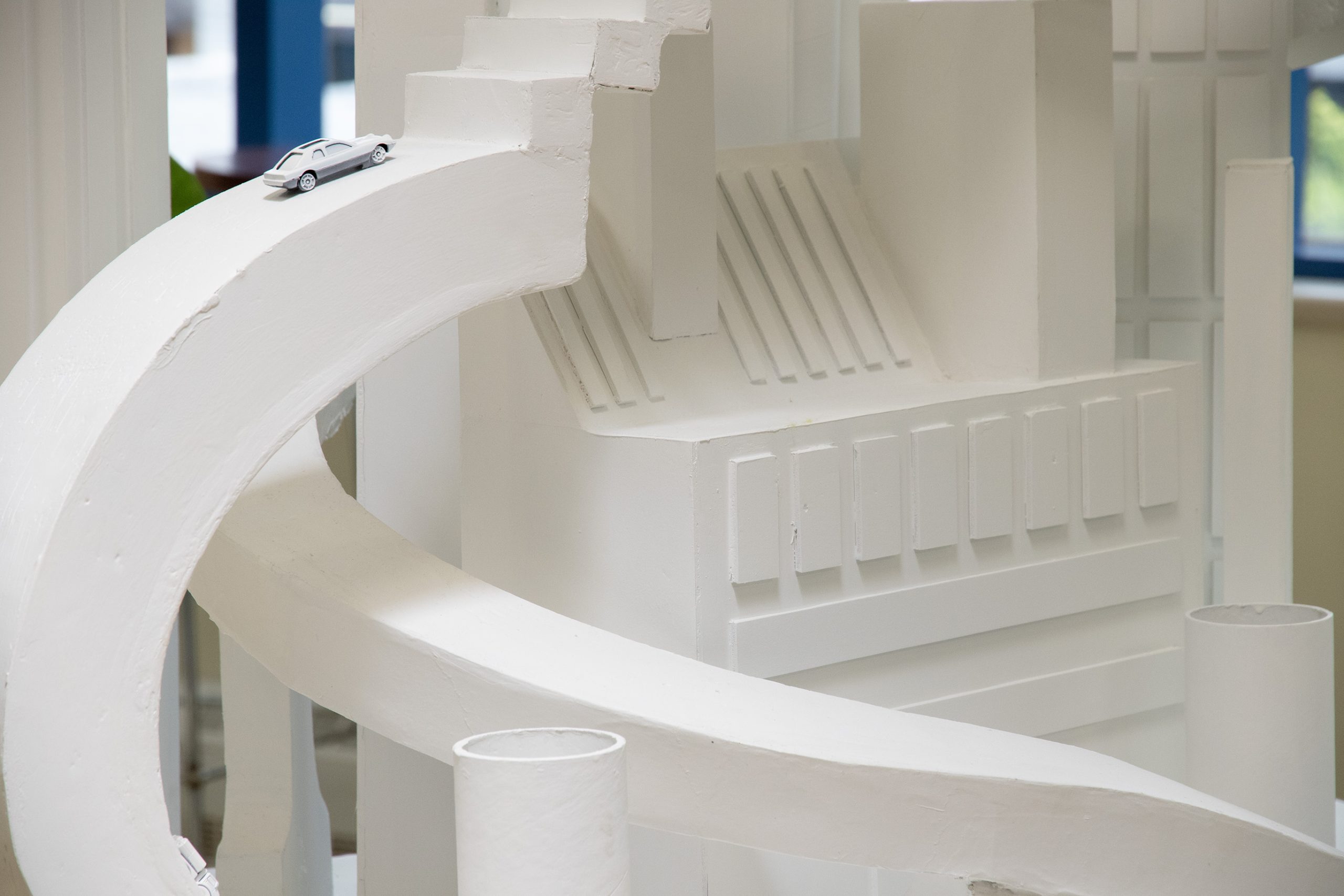 Exposition issue d’une exploration pluridisciplinaire du questionnement incessant de l’artiste sur l’iconographie, la vitesse et les symboliques de la ville combinée à son intérêt pour la culture populaire et l’enfance. Le style sculptural qui s’inspire des univers des bandes dessinées et des maquettes a pour but de donner l’impression qu’un monde impossible existe quelque part.