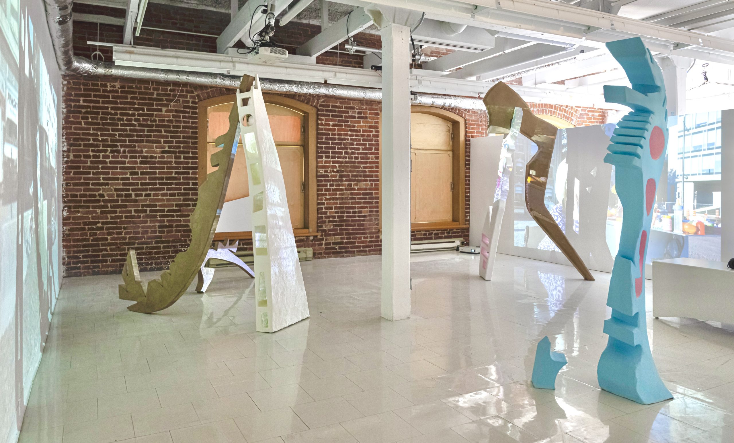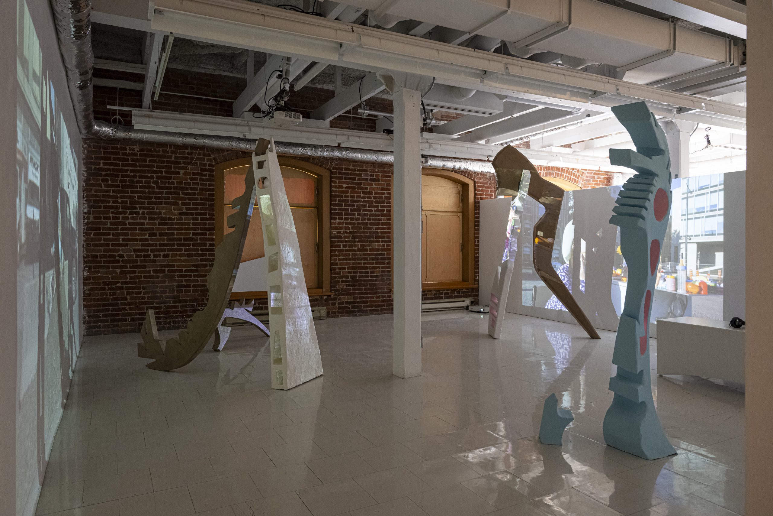 Être femme sous la ville, la lueur d’une existence rebelle est un projet qui rassemble une série de sculptures évoquant des formes à la fois abstraites, mais issues d’une urbanité certaine à des vidéos performances réalisées dans des lieux bruts des villes. Ces sculptures s’inscrivent dans un projet qui questionne à la fois la ville et sa grandeur ainsi que les femmes qui l’habitent avec le dessein de remettre en question les prémisses d’une économie urbaine par la fête et l’extravagance. Les sculptures, à la fois sobres et éclatées, viennent faire écho à l’extravagance assumée de la vidéo.