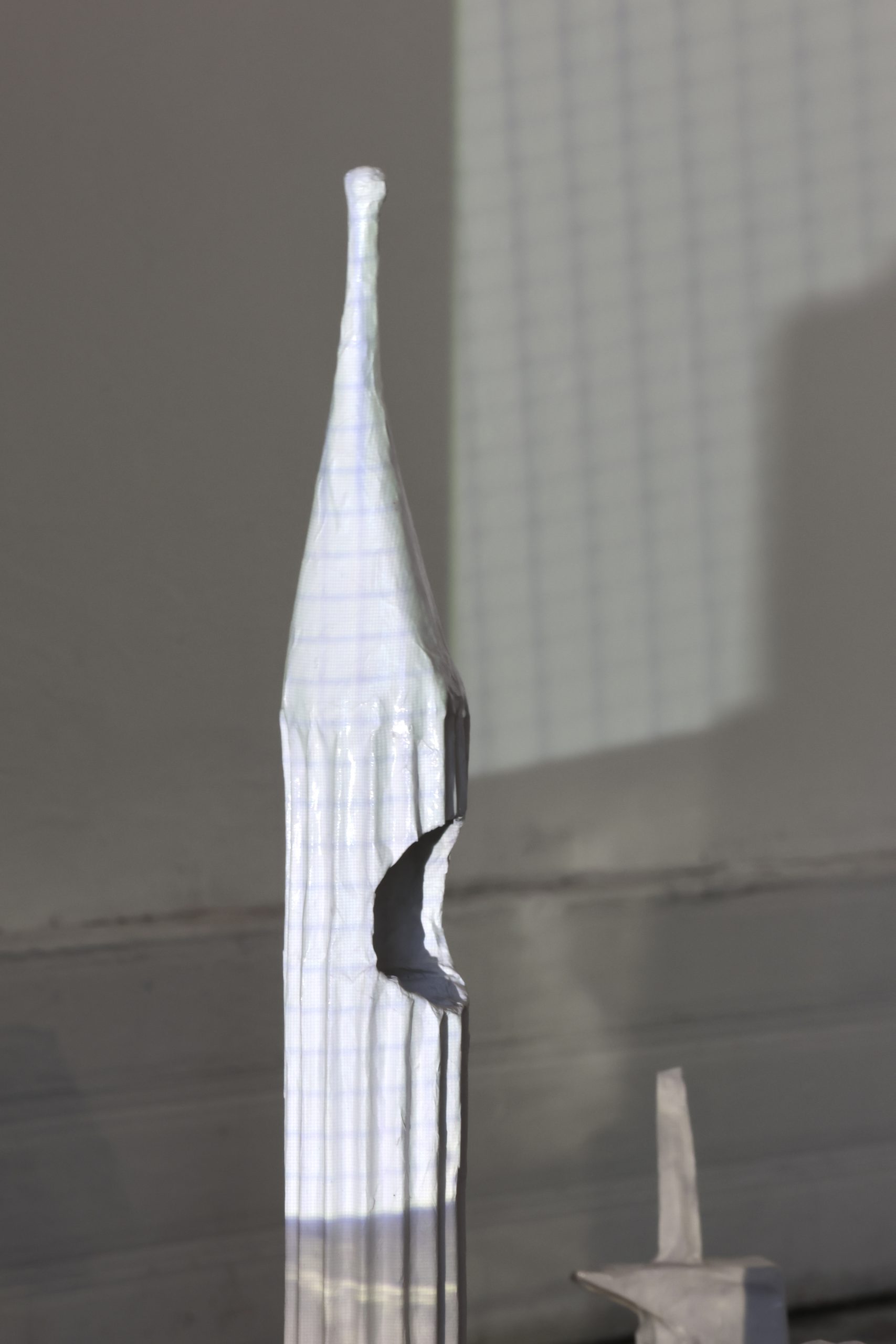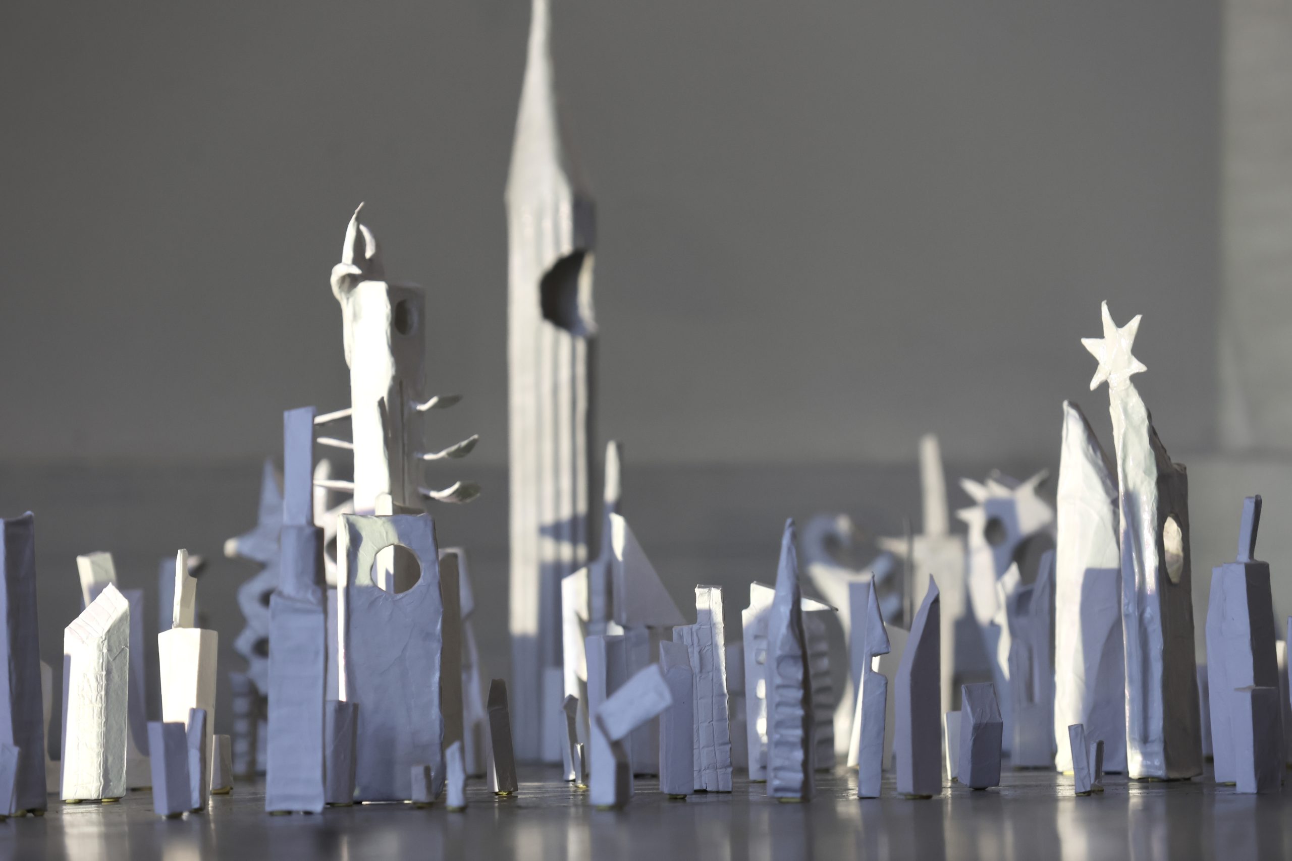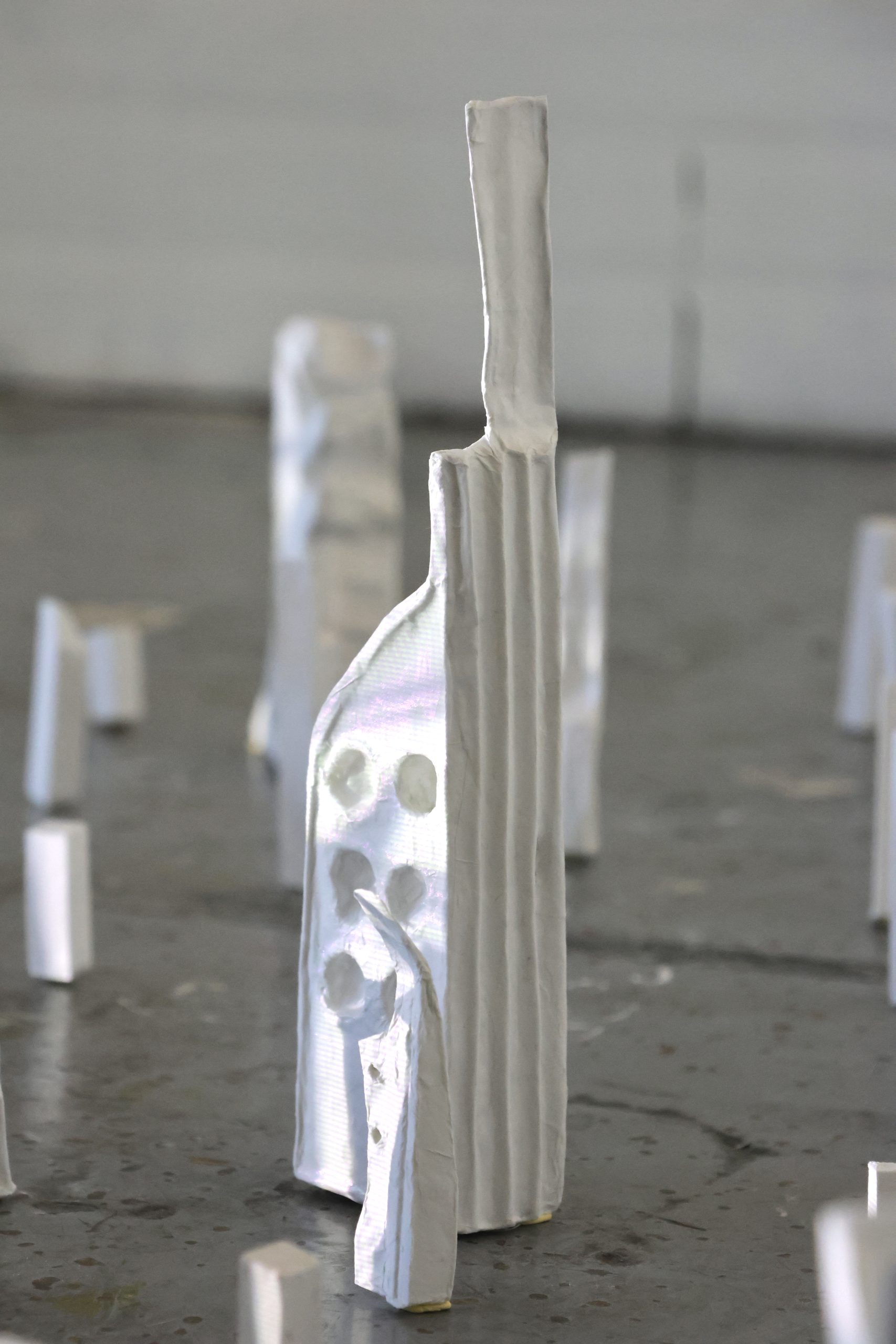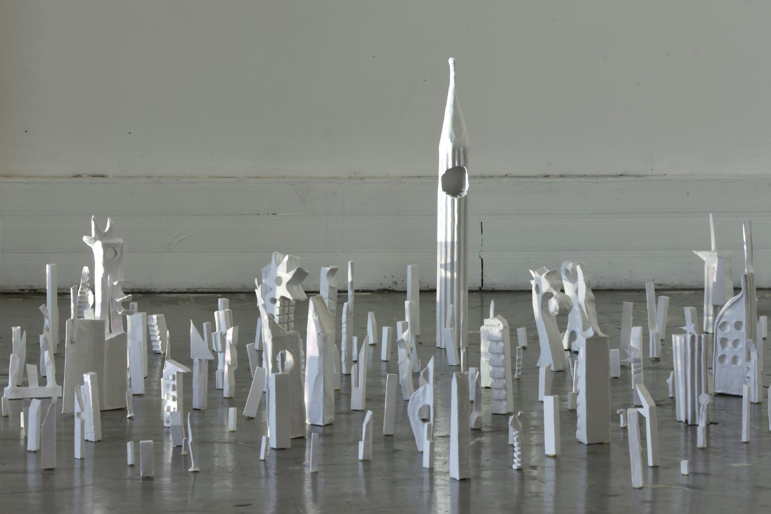 J’ai vu la Ville-Gazon sous le Périphérique est une installation rassemblant sculptures et vidéos. Questionnant la quantité de végétation dans l’urbanité et de son impact sur la sensation d’inclusivité dans les villes, ce projet, par la mise en espace de petits édifices, a pour viser de créer une sensation de « gazon » et d’herbes urbaines envahissant le sol. Des séquences vidéo captées sous le Périphérique de Paris sont projetées sur les petits édifices. Les ombres ainsi créées dialoguent avec la dualité brutalité/beauté furtive existant dans des lieux urbains oubliés.