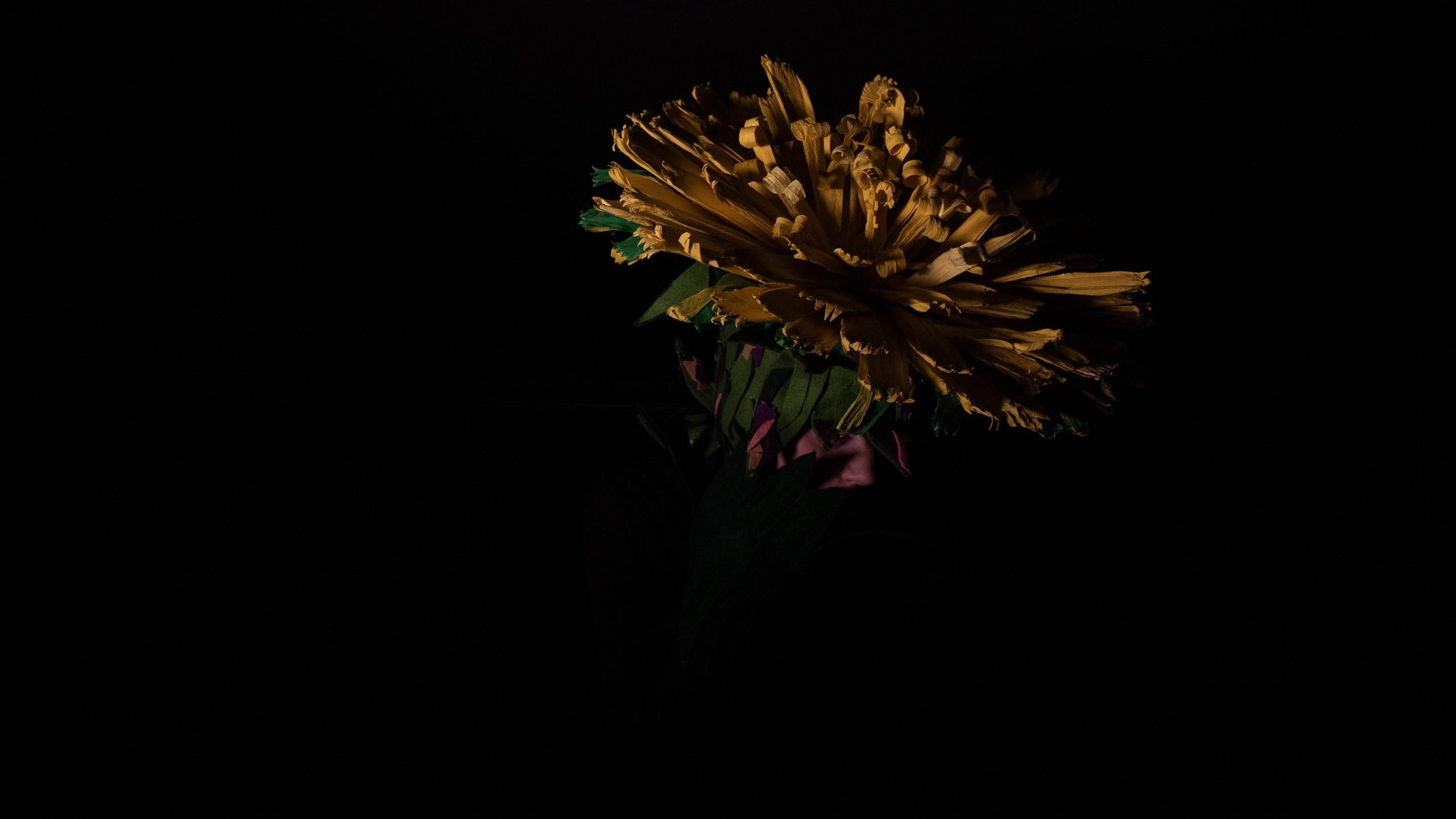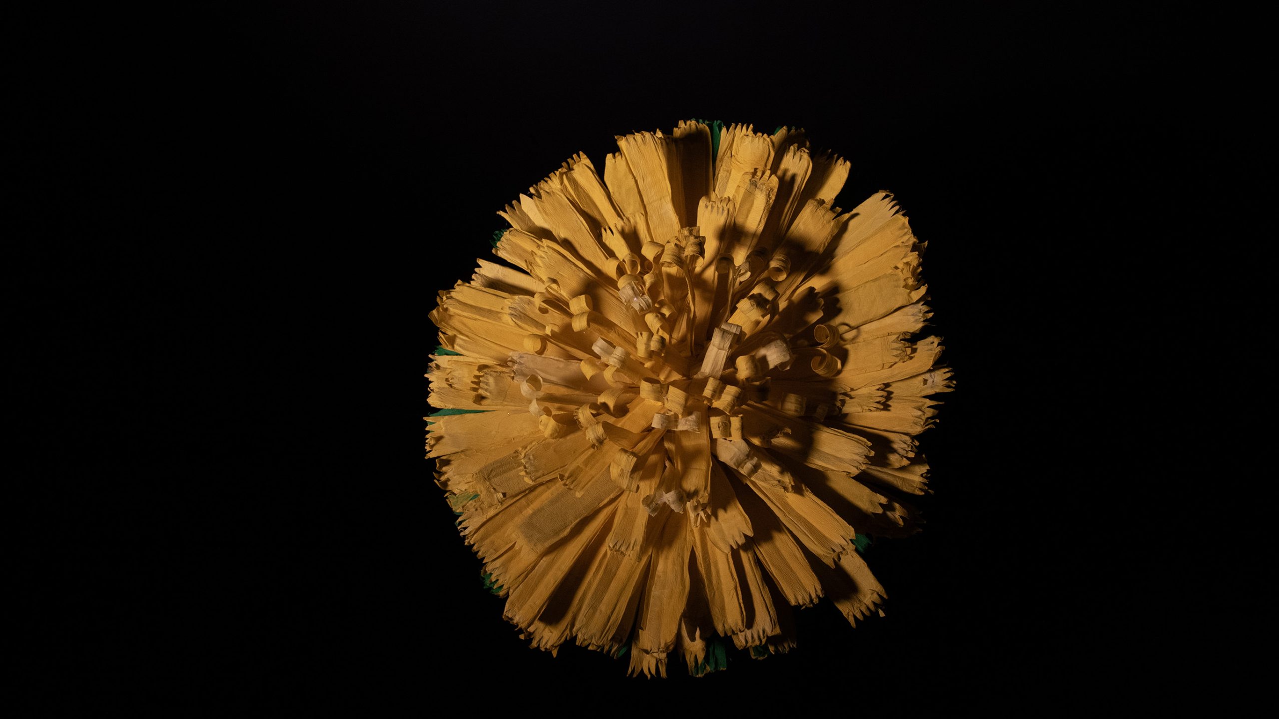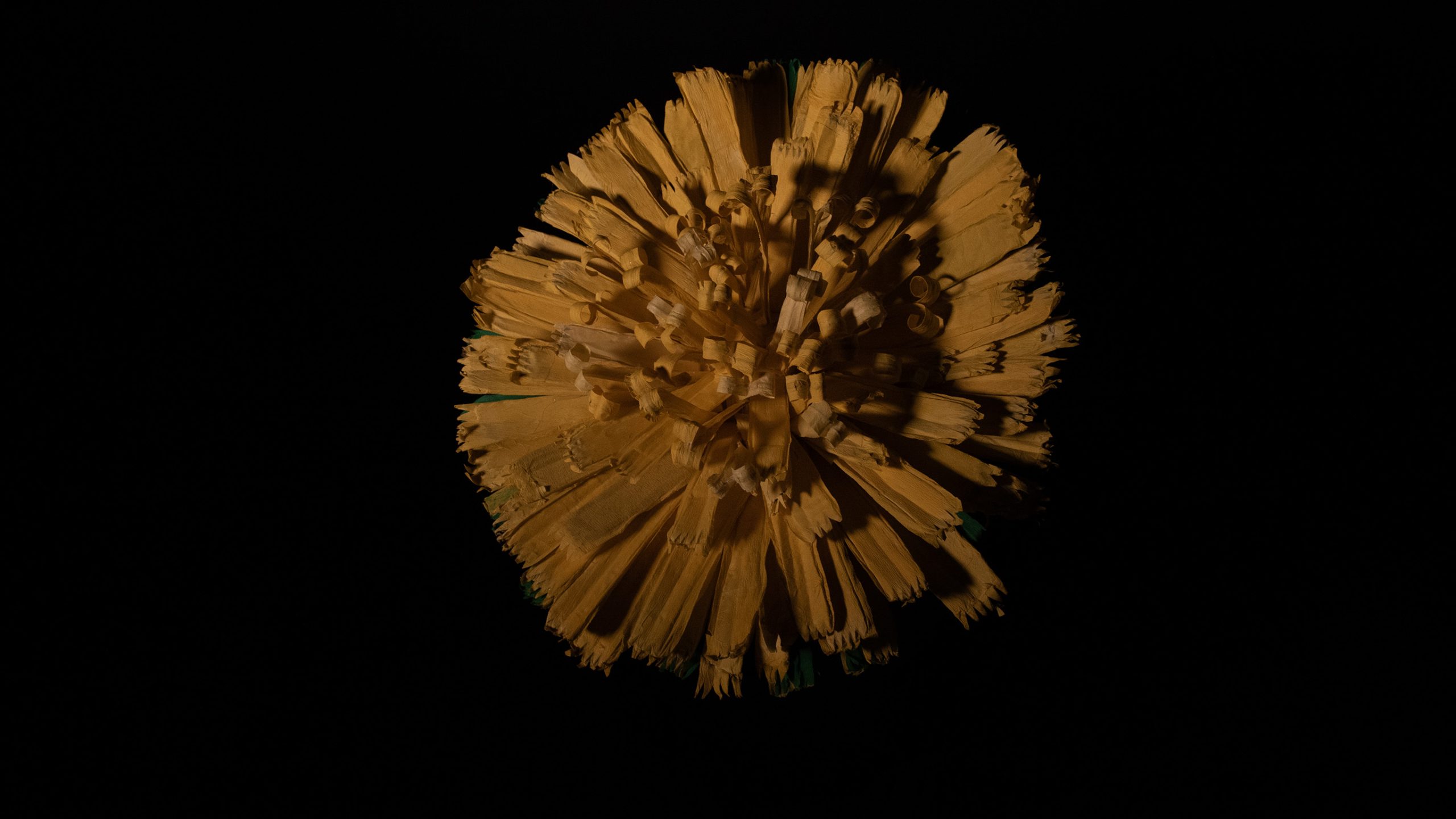 Cette performance vidéo débute sur un pissenlit vu de haut placé dans un environnement sombre. Au gré du vent, le pissenlit se met à bouger jusqu’à réaliser que ce n’est pas un vrai pissenlit, mais plutôt un chapeau imitant la forme d’un pissenlit posé sur ma tête. En faisant bouger mon corps et ma tête de différentes façons, je viens imiter les mouvements des pissenlits lorsque le vent les secoue. L’hybride « femme-pissenlit » se crée ainsi dans la combinaison costume-mouvement-imitation du pissenlit.