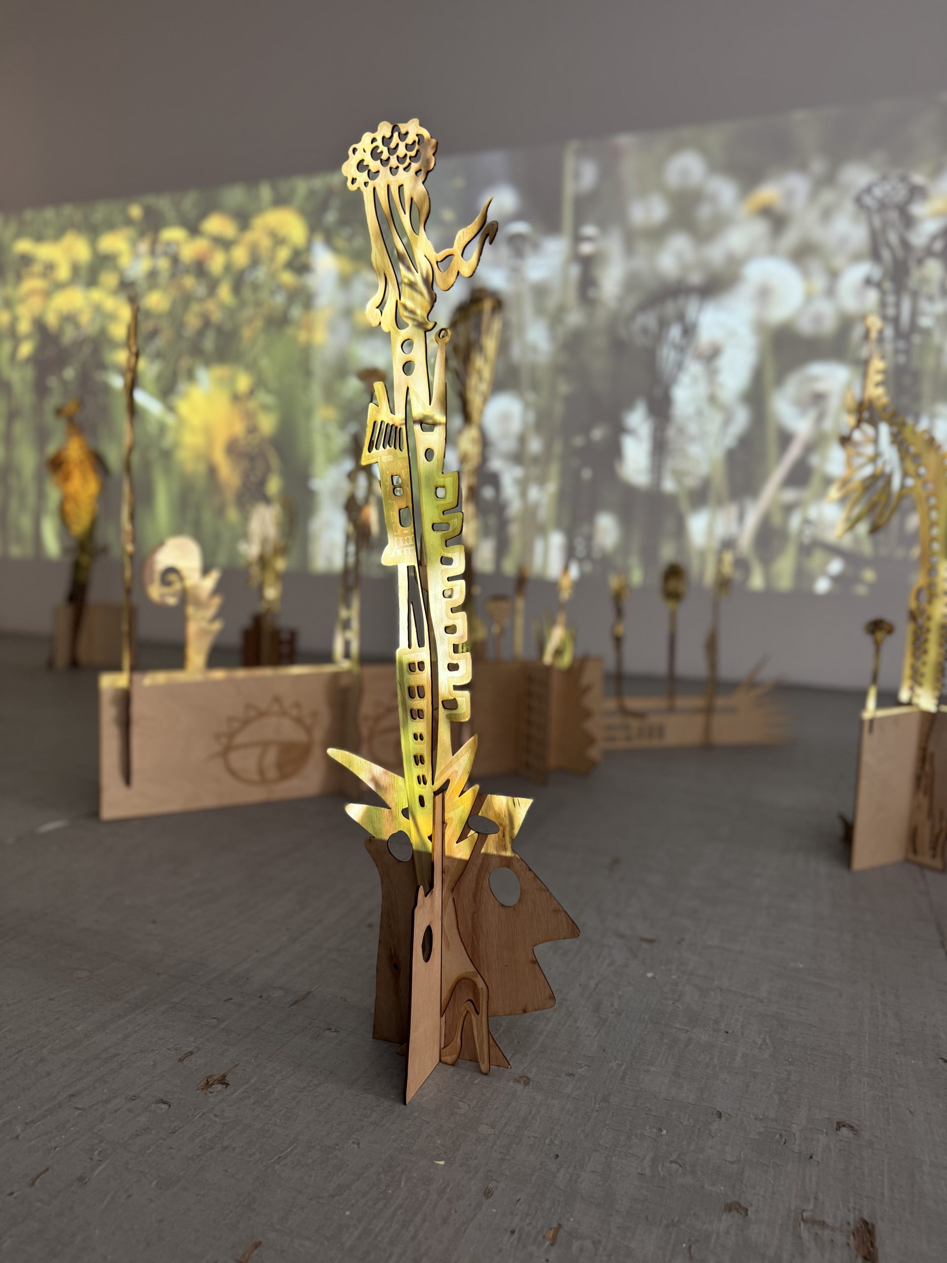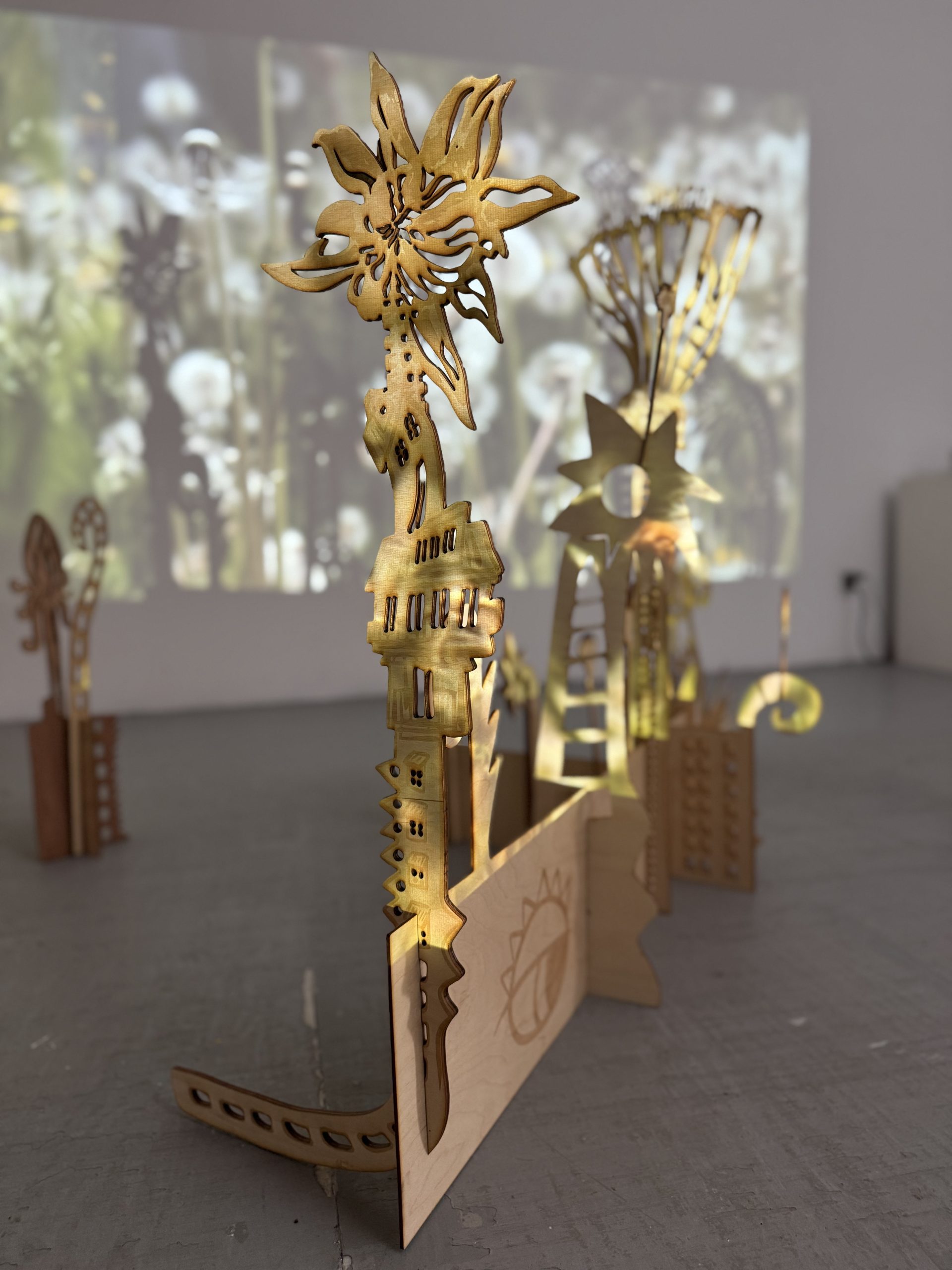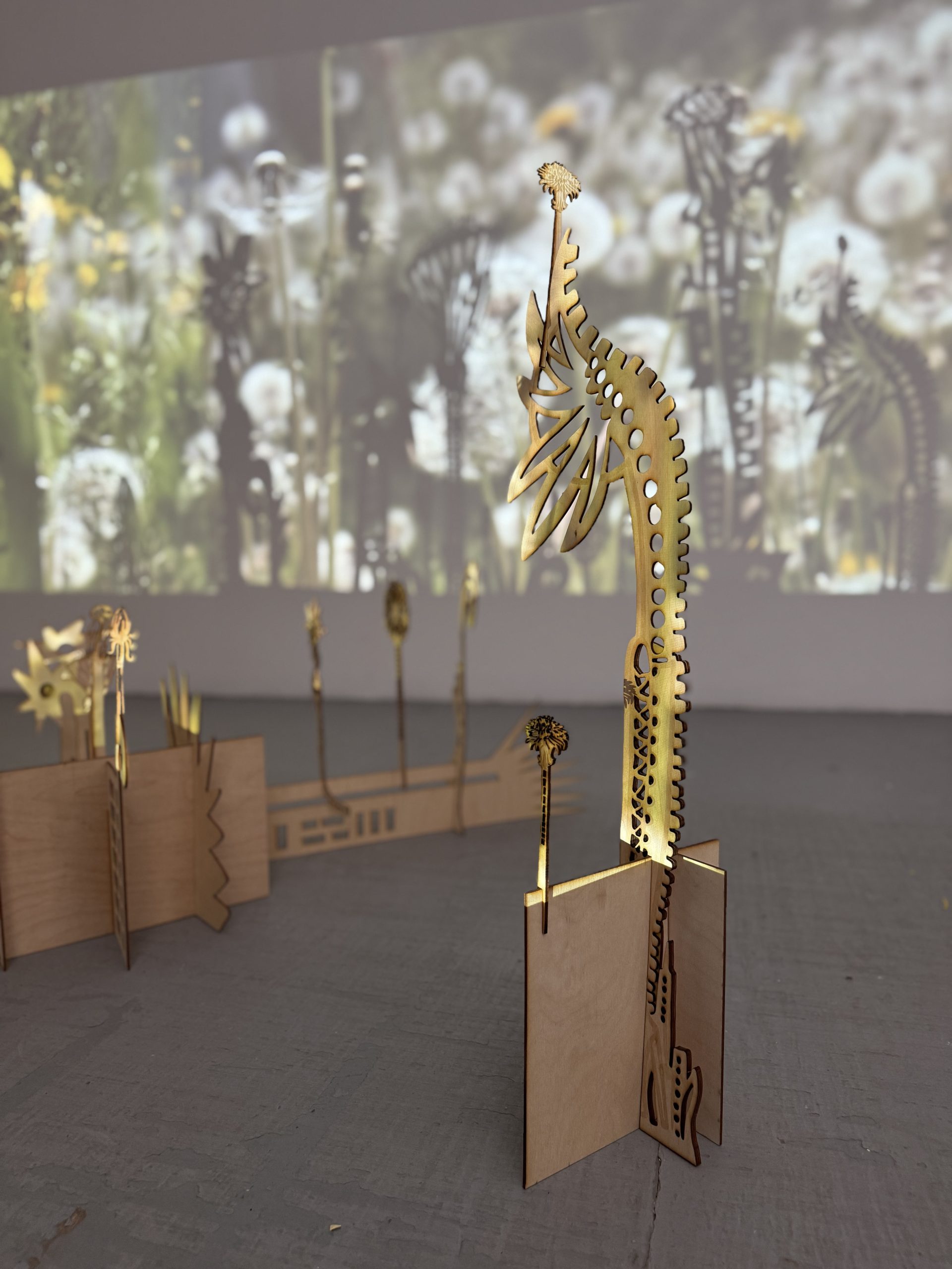 Les dents du lion est une recherche-création autour du pissenlit, plante résiliente, commune et évocatrice, qui dialogue le projet 𝘍𝘦𝘮𝘮𝘦–𝘨𝘢𝘻𝘰𝘯. Ce projet explore les formes de végétation urbaine souvent invisibilisées, en lien avec les corps féminisés dans la ville. Entre découpe laser, fabrication de structures, performance et captation vidéo, Les dents du lion façonne un langage plastique et gestuel inspiré de la légèreté́ et de la dissémination du pissenlit, en résonance avec la nature urbaine et les territoires oubliés. (La Femme-Pissenlit partit de ce projet)